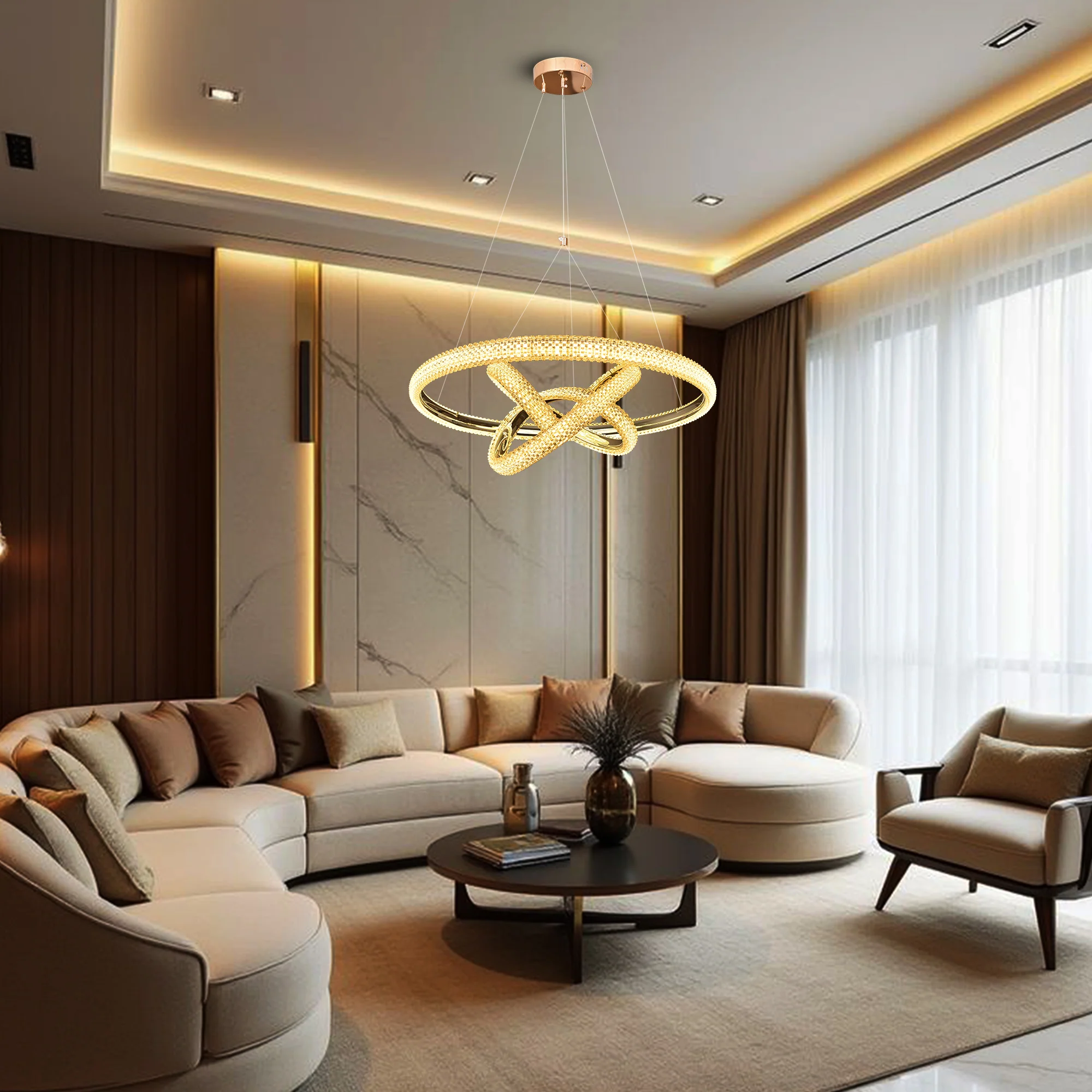 Perfect for dining areas, living rooms, or modern open spaces, this chandelier adds a sophisticated glow while complementing contemporary décor beautifully