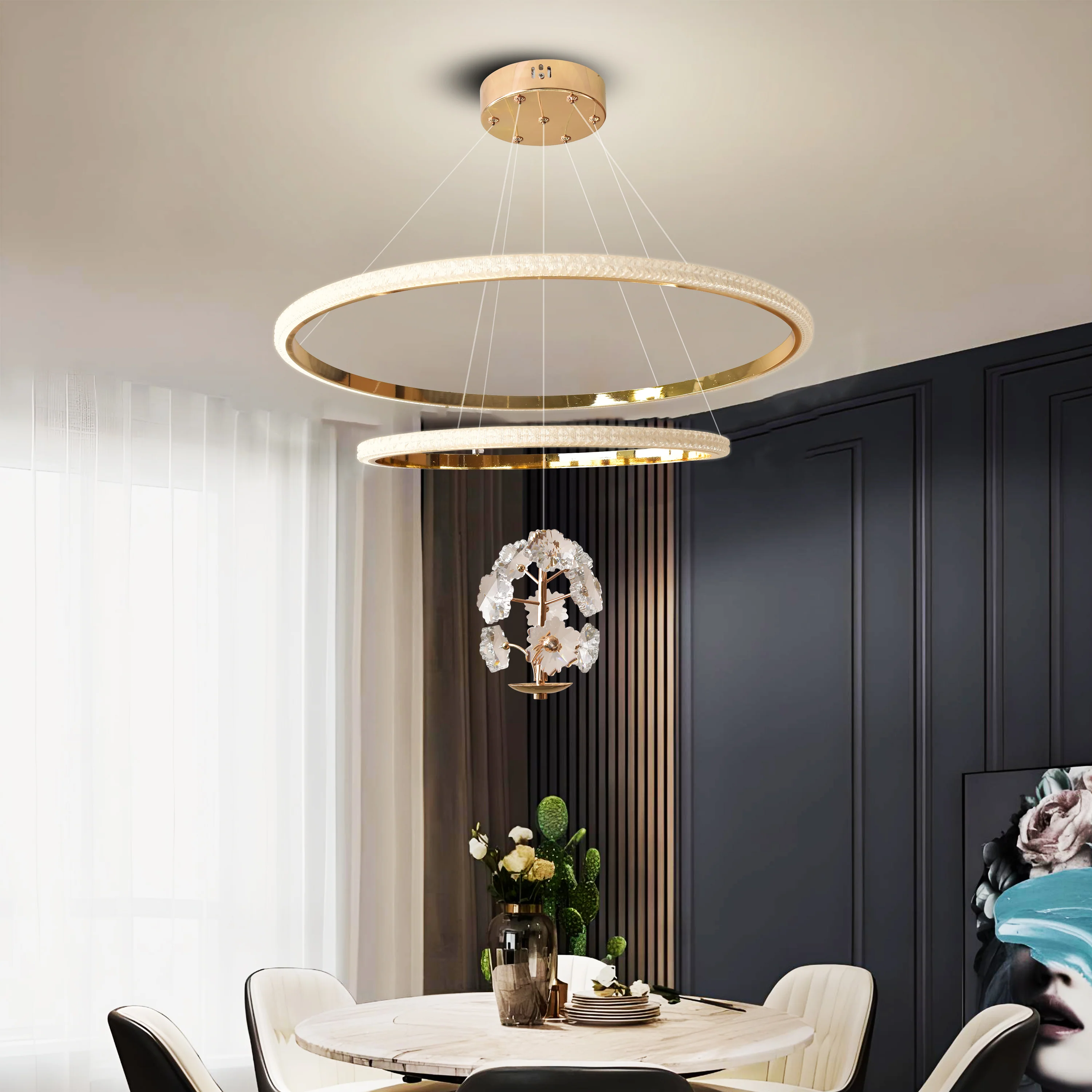 The Crewt Modern LED Chandelier features a striking yet balanced silhouette that casts warm, even illumination throughout your space while keeping a clean, elegant presence. Its refined form adds subtle visual interest without overwhelming your décor.